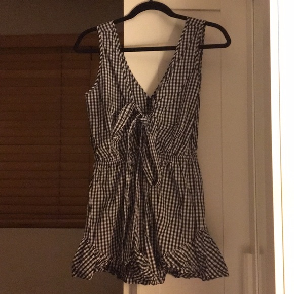 Love cut and deep v back gingham patterned romper size md, worn once.