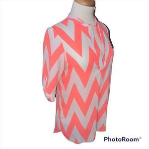 Gingy & Cocoa M neon coral and white chevron 3/4 sleeve flowy top