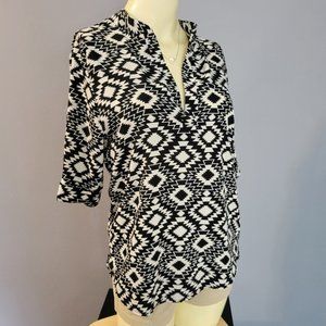 Gingy & Cocoa V-Neck Black & White Designed Blouse