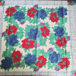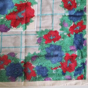 Here's a lovely vintage Ginnie Johansen 100 Percent Cotton Floral 34"x 35" Square Scarf. This pretty scarf is in great condition with no holes, stains or tears.