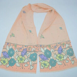 Ginnie Johansen Scarf Pink Gray Floral Silk Scarf