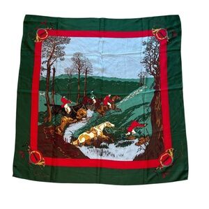 Ginnie Johansen Silk Scarf Green Gallery Horse Hunting 80s Retro Equestrian
