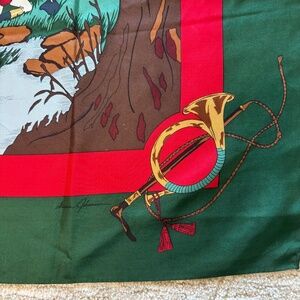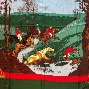 Good vintage condition. 100% silk Equestrian scene. Beautiful bright colors.
