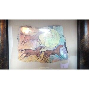 Ginny Hogan Framed Wild Red Horses and Bull Shamanic Art Sante Fe Petroyglyph