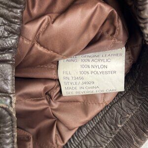 Gino Di Giorgio Leather Brown Jacket With Green Collar & Plaid Lining Sz M