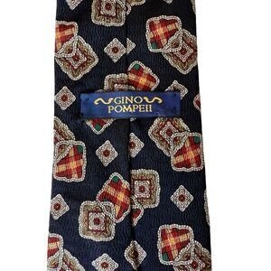 Gino Pompeii Tie 100% Silk From Italy NAVY BLUE TIE Plaid Textured Necktie