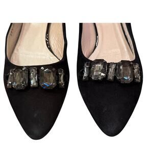 Gino Rossi Black Flat Velvet with Crystal Detail Pointed Toe Dress Shoe Sz 38.5