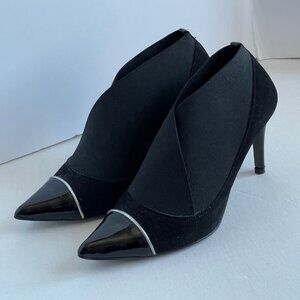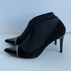 Gino Vaello Ankle Heel Bootie Women 8.5 Pointed Toe Black Suede Leather Shoe