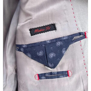 Gino Valentino Mens Hand Tailored Modern Fit Linen Blazer Sport Coat Gray Sz 42