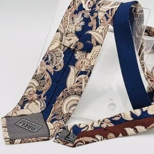 Gianfranco Ferré grew up just outside Milan, a place that might as well have been kissed by the muses for anyone destined for the world of fashion. From his modest start designing raincoats to ascending as the head of Christian Dior in Paris, Ferré became as grand as anyone could dream in the industry. In 1986, he unveiled his first eponymous couture show in Rome, a city as dramatic and full of stories as his designs. This tie hails from that era, its flowing pattern a testament to his genius, with a bold red stripe taking center stage like a runway lit for stardom. It feels couture, it feels bespoke—and, truly, isn’t every man entitled to a moment of custom-made glory?