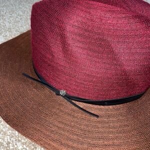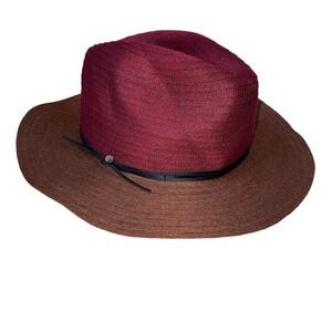 GioVannio Hat new sun fedora straw Maroon & Brown leather band Beach fall