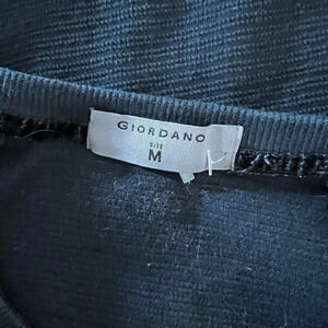 Giordano Black Sweater Size Medium 100% Cotton Crewneck Long Sleeves Pullover
