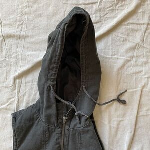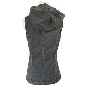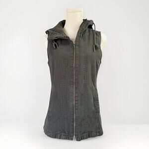 Giordano Canvas Denim Hooded Vest Women M Dark Gray Grunge Lined Zip Outdoor