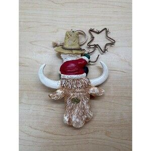 Giordano Christmas Ornament Santa Cowboy Sitting on a Bull's Head with Star