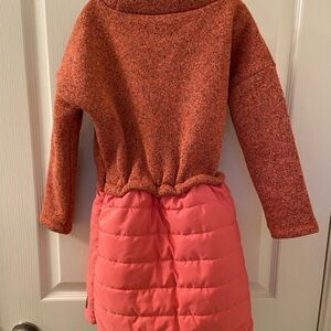 Giordano Junior Girls Georgia Peach Sweater Puffer Dress Size 120 6-7 Years. New With Tags. Top part of dress is thick like a sweatshirt and the bottom skirt puffer material style. Very unique dress.