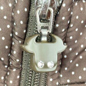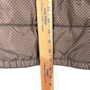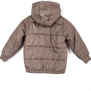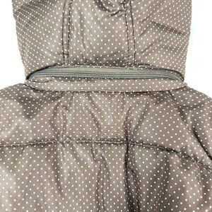 Size: 5-6 Years Color: brown, white polka dot pattern Closure: full zip Neckline: removable hoodie Sleeves: long, elastic cuff Pockets: 2 side, 1 interior Hem: straight, elastic No tears, no stains, in great condition