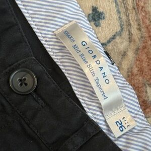 Giordano Mid Rise Slim Tapered 26 waist 30 length Classic Black Women's Trousers