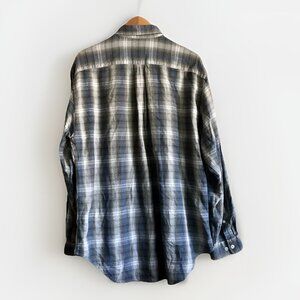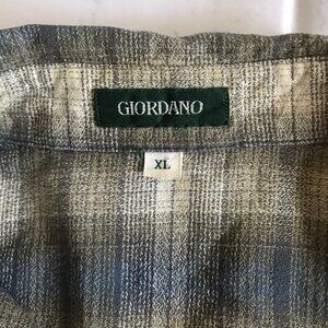 Giordano Plaid Button Up Shirt Men's XL Blue Long Sleeve Cotton Casual