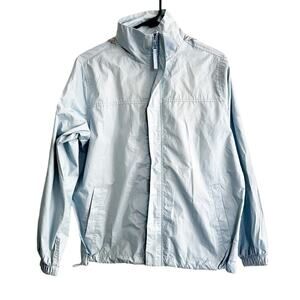 Giordano Waterproof Hooded Rain Jacket Sz XS Blue Elastic Drawstring Packable