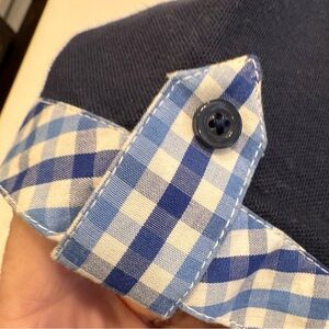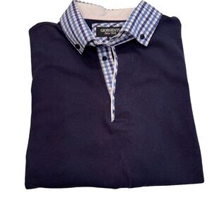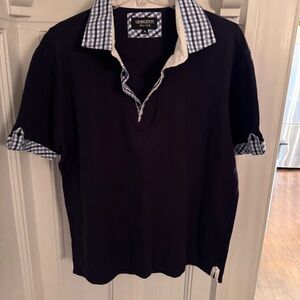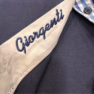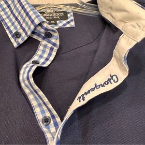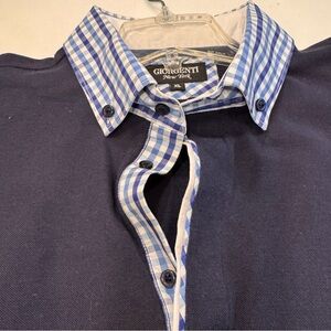 Excellent like new condition. Women’s Giorgenti New York custom navy blue polo shirt with plaid collar and cuffs. Embroidered logo, cotton. Women’s size XL. See photos for measurements MSRP $185