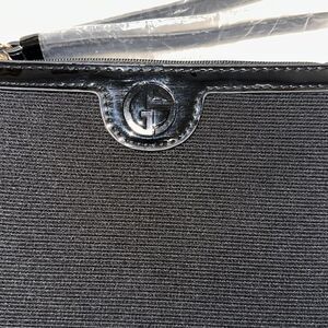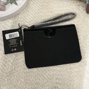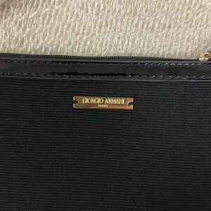 Giorgio Armani Beauty Small Black Leather Trim Soft Cord Knit Ribbed Wristlet