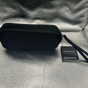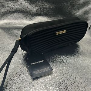 Giorgio Armani Beauty Zip Up Cosmetic Pouch Black Mesh Panel Travel Toiletry Bag