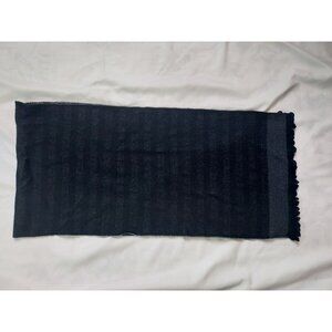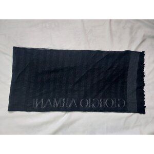 This Giorgio Armani scarf offers a sophisticated touch with its black and gray stripes. Its softness provides warmth and style. The scarf's elegant design complements various outfits, making it versatile for different occasions.