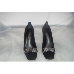 Giorgio Armani Black Satin Rhinestone Pumps Size 39 EUR 9 US - New in Box