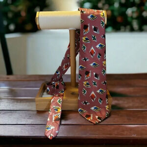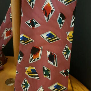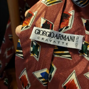 Add a touch of sophistication to your wardrobe with this Italian designer Giorgio Armani Cravatte tie. Made of 100% silk, this classic-width tie features a multicolor geometric pattern with atomic diamond details, giving it a retro and abstract theme. It's perfect for any formal or casual occasion and is sure to make a statement. The tie is made in Italy and is a vintage piece, making it a unique addition to your collection. The attachment type is a traditional tie and it's suitable for men's department.