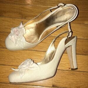 Cream, off white, bridal, bride to be, flower, Slingbacks, heels, pumps, adjustable strap