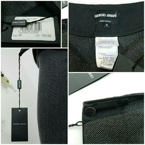 NWT Beautiful wide leg high waisted flowy Giorgio Armani pants in gray color. Italian size 38 fits 2 US. Brand new with attached tags. Zip bar with button closure. Approx measurements: 14.5" across waist, 10" rise and 32" inseam. Fiber content: 80 polyester, 40% cupro. These high waist slacks are the perfect blend of sophistication, class, and style. They look great with just about any blouse or button-up. Flattering and luxurious