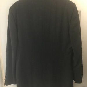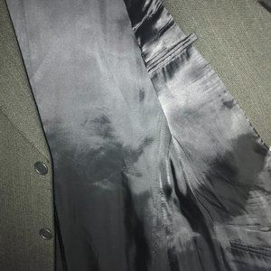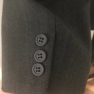 This is a sharp looking men's wool Giorgio Armani blazer fully lined in rayon and is a size 38R. It features three front pockets and three inside pockets and is an olive green/dark gray color. Its in great shape and is a very nice classic blazer on!