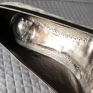AWESOME looking slip on flat in silver/bronze tones…great for spring/summer! In excellent condition with normal wear on soles…see all pics and bundle with other favs to save 👠🎉