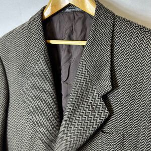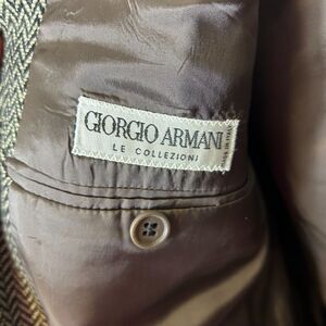 Giorgio Armani Made In Italy Tan Black Chevron Pattern Wool Cashmere Blazer 44R