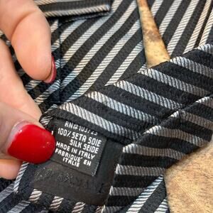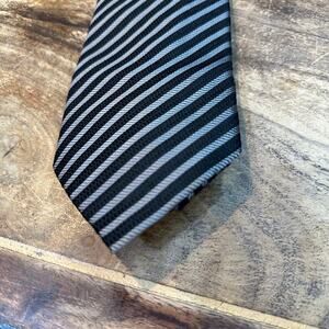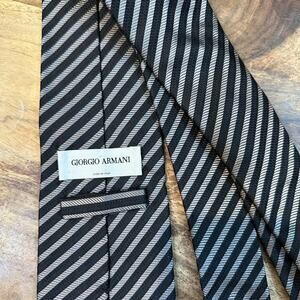 Giorgio Armani Men's Black & Gray Striped 100% Silk Tie