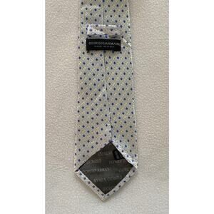 Giorgio Armani Men’s Necktie 100% Silk White W/Blue Diamonds Made In Italy EUC