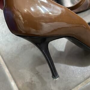 Giorgio Armani Brown Patent Leather Pointed Toe Stiletto Heel Pumps Size 38.5