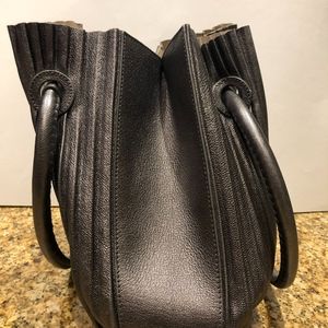 Hit the town in style with this beautiful Giorgio Armani purse. Made in Italy. Pleated leather, suede interior, rounded handles, GA charm and removable leather wallet. This purse was a gift and has been barely used. Minor wear on the bottom of the purse.