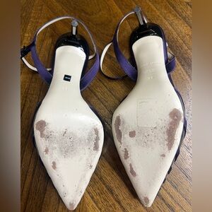 Step into luxury with these stunning Giorgio Armani purple silk heels. Featuring delicate strappy details and a sleek pointed toe, they bring an effortlessly elegant touch to any outfit. The rich purple silk adds a sophisticated sheen, perfect for evening events or special occasions.