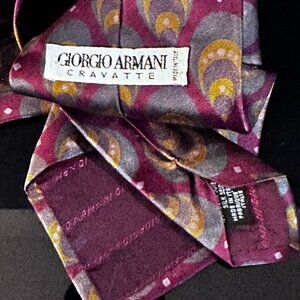 Thank you for looking at this vintageGiorgio Armani Silk Balloons Tie Mid Century Modern Mint Red Gray Muted Mod VTG