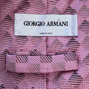 Giorgio Armani, Pink tie, Silk tie, Designer tie, Italy tie, Formal tie, Elegant tie, Men's fashion, Geometric print, Square pattern, Italian tie, Luxury accessory, Men's tie