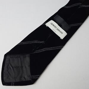 Giorgio Armani Velvet Black Tie With Subtle Metallic SilverThreaded Stripes