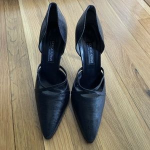Giorgio Armani Vero Cuoio Black Leather Reptile Pumps Heel Shoes Italy