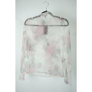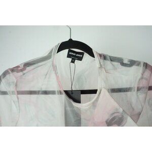 Giorgio Armani White Pink Floral Cupro Blend Bow Sheer Top 42 BRAND NEW