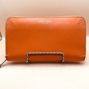 Giorgio Armani Women’s La Prima Lame-leather Wraparound Zip Wallet Orange $975