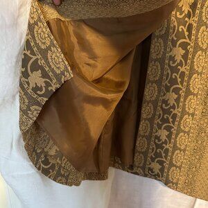 Beautiful vintage Giorgio Armani wrap skirt, labeled a size 44 but easily adaptable by repositioning the button for a more personalized, adjustable fit.