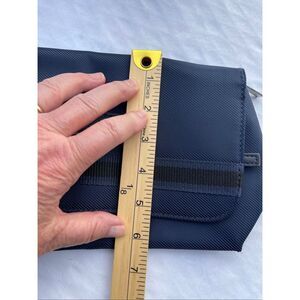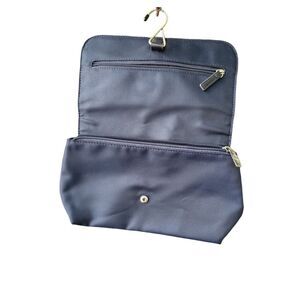 Giorgio Armani travel makeup bag . Back open pocket, one large zippered pocket and a small zippered pocket on flap with hanging hook.