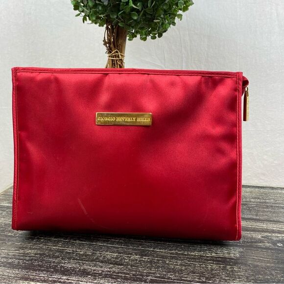 ❤️ Giorgio Beverly Hills Red Satin Zip Close Cosmetic Makeup Bag
