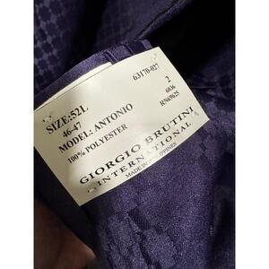Giorgio Brutini International men’s suit, model Antonio, size 52L (W-46). Elegant dark purple checker-pattern fabric made of 100% polyester. Fully lined, stylish and brand new with original tags. Unique formal look with luxury texture.