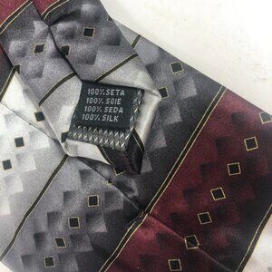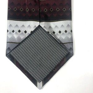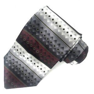 Giorgio Brutini Collezione Silk Tie - Geometric Diamond Pattern, Gray & Burgundy